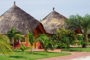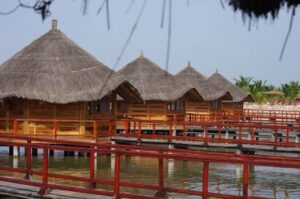 Les 46 chambres spacieuses, parmi lesquelles 32 grand standing et 10 bungalows sur pilotis, dont deux suites d’exception, offrent un refuge où le confort moderne rencontre l’élégance naturelle. Du balcon, la vue sur le fleuve ou sur le jardin invite à la rêverie, tandis que la climatisation douce, le Wi-Fi performant et les lits douillets garantissent un séjour hors du temps. Les bungalows sur pilotis, suspendus entre ciel et eau, offrent l’expérience rare de se réveiller au chant des oiseaux et au clapotis de l’eau.