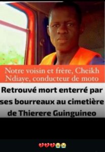 Selon les informations recueillies, la victime avait transporté un client au village de Ngouloume, situé à environ sept kilomètres de la commune de Guinguinéo. Sur le chemin du retour, Cheikh Ndiaye aurait été poursuivi par certains de ses propres collègues conducteurs de “Jakarta”. Ces derniers lui auraient tendu une embuscade, avant de l’agresser, de le tuer, puis de l’enterrer discrètement des cimetières, non loin du quartier Thiérère